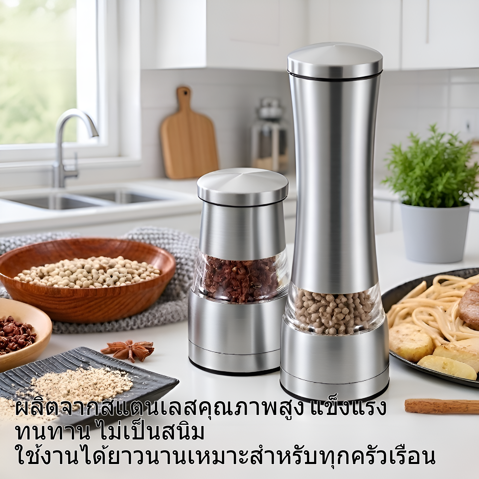 เครื่องบดพริกไทยมือหมุนสแตนเลสสำหรับใช้ในครัว