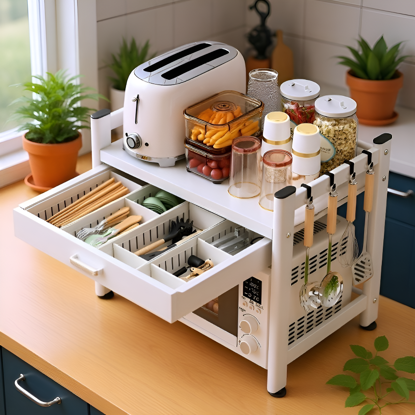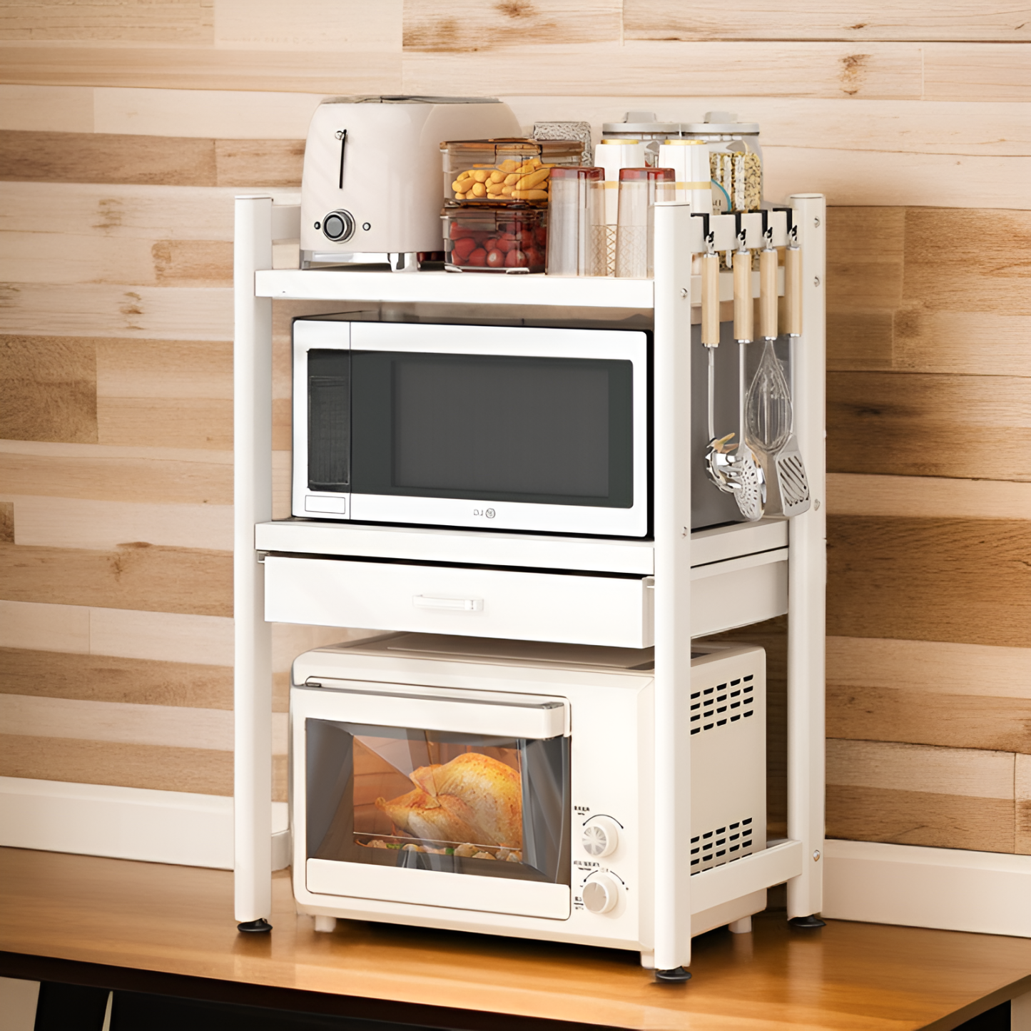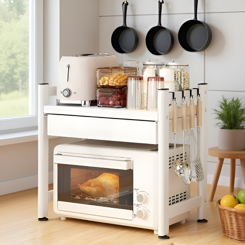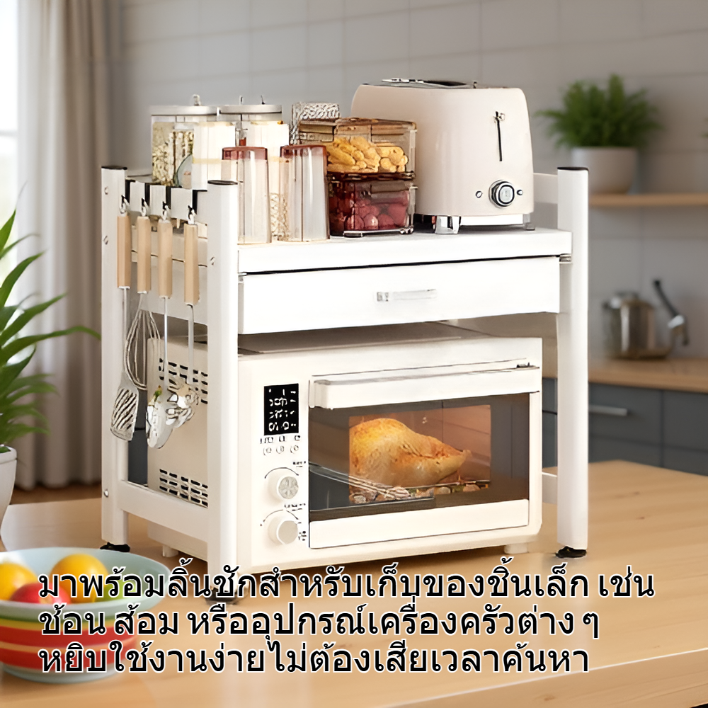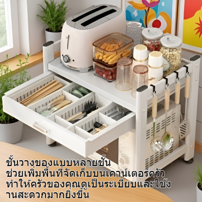 ชั้นวางของแบบหลายชั้นสำหรับวางบนเคาน์เตอร์ครัว พร้อมลิ้นชัก