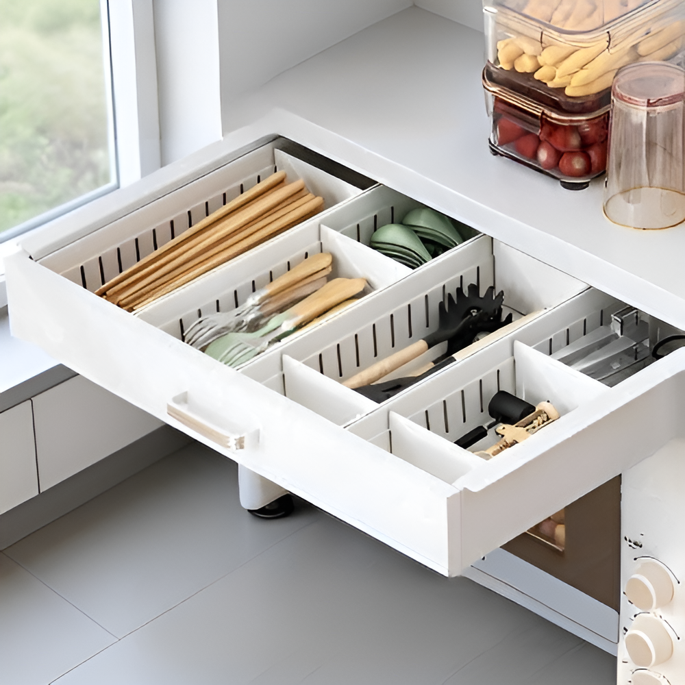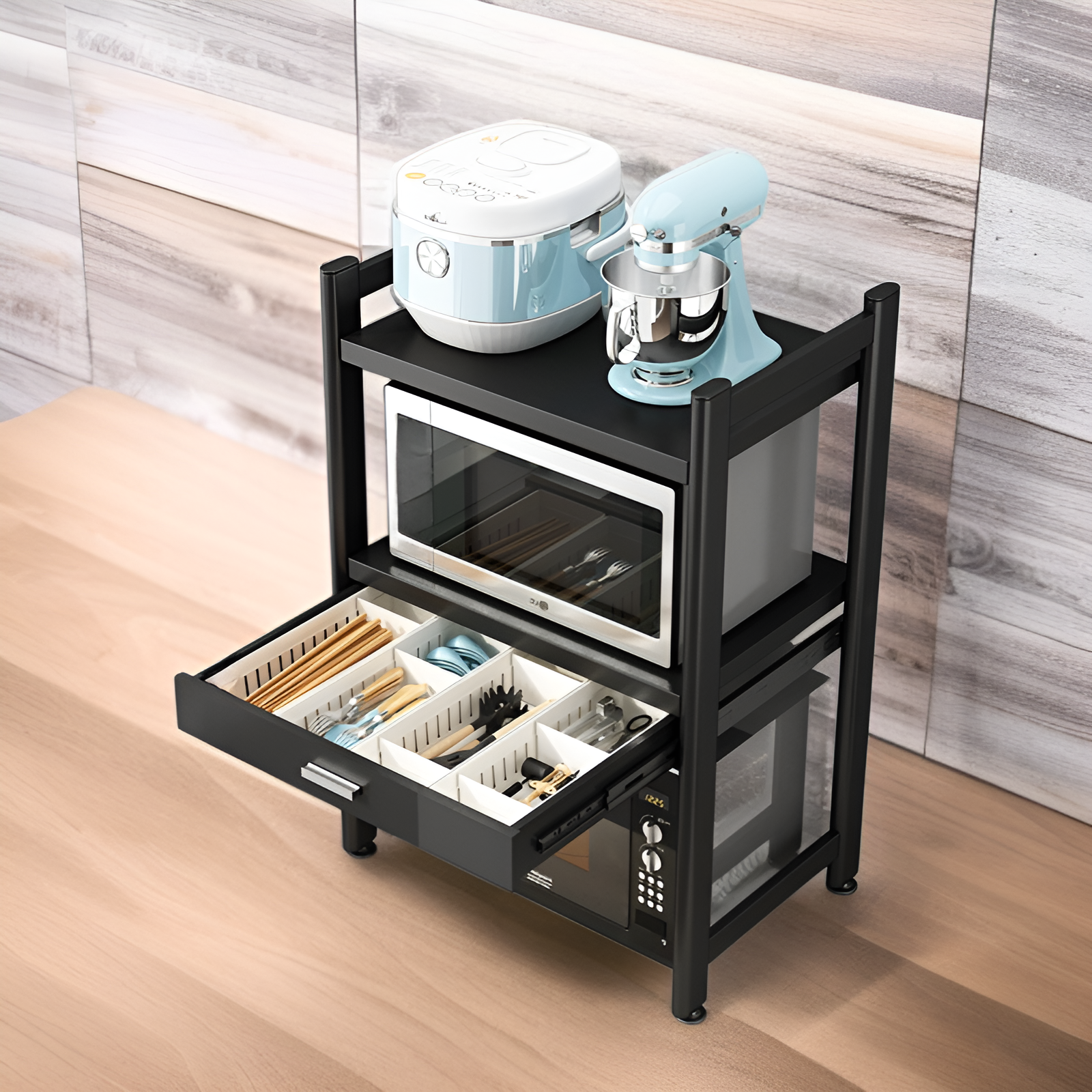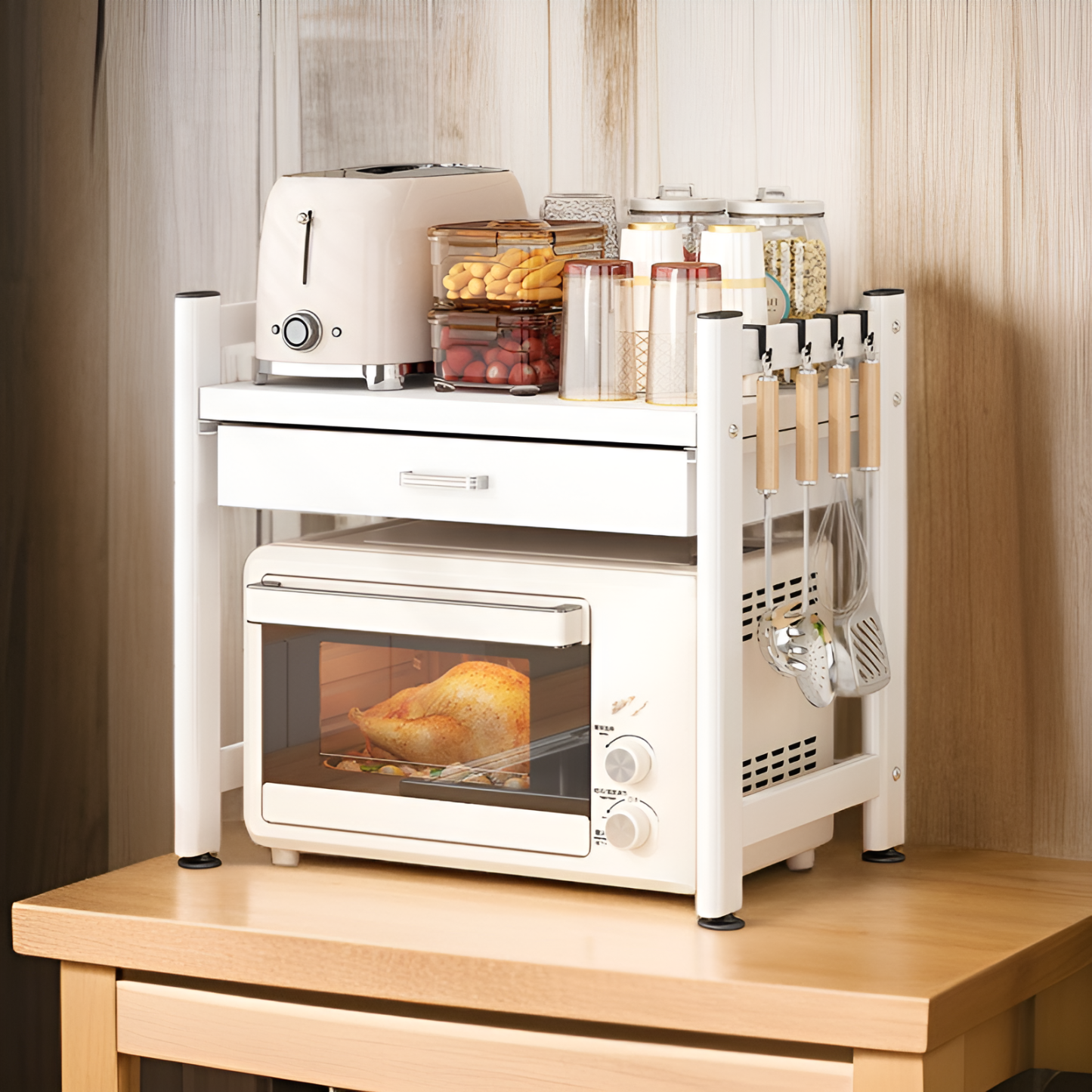 ชั้นวางของแบบหลายชั้นสำหรับวางบนเคาน์เตอร์ครัว พร้อมลิ้นชัก